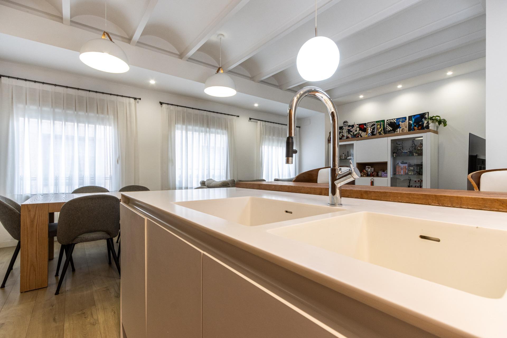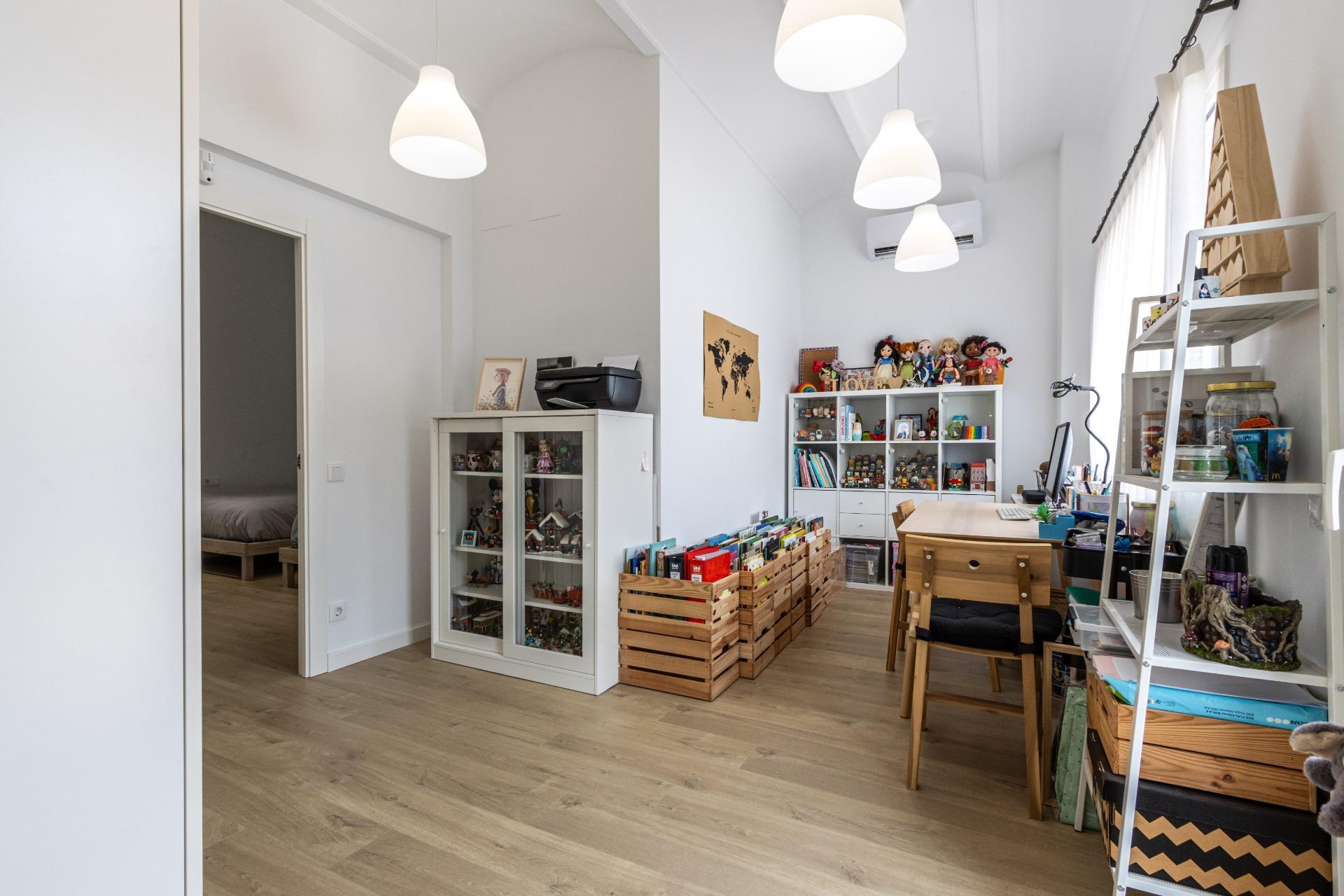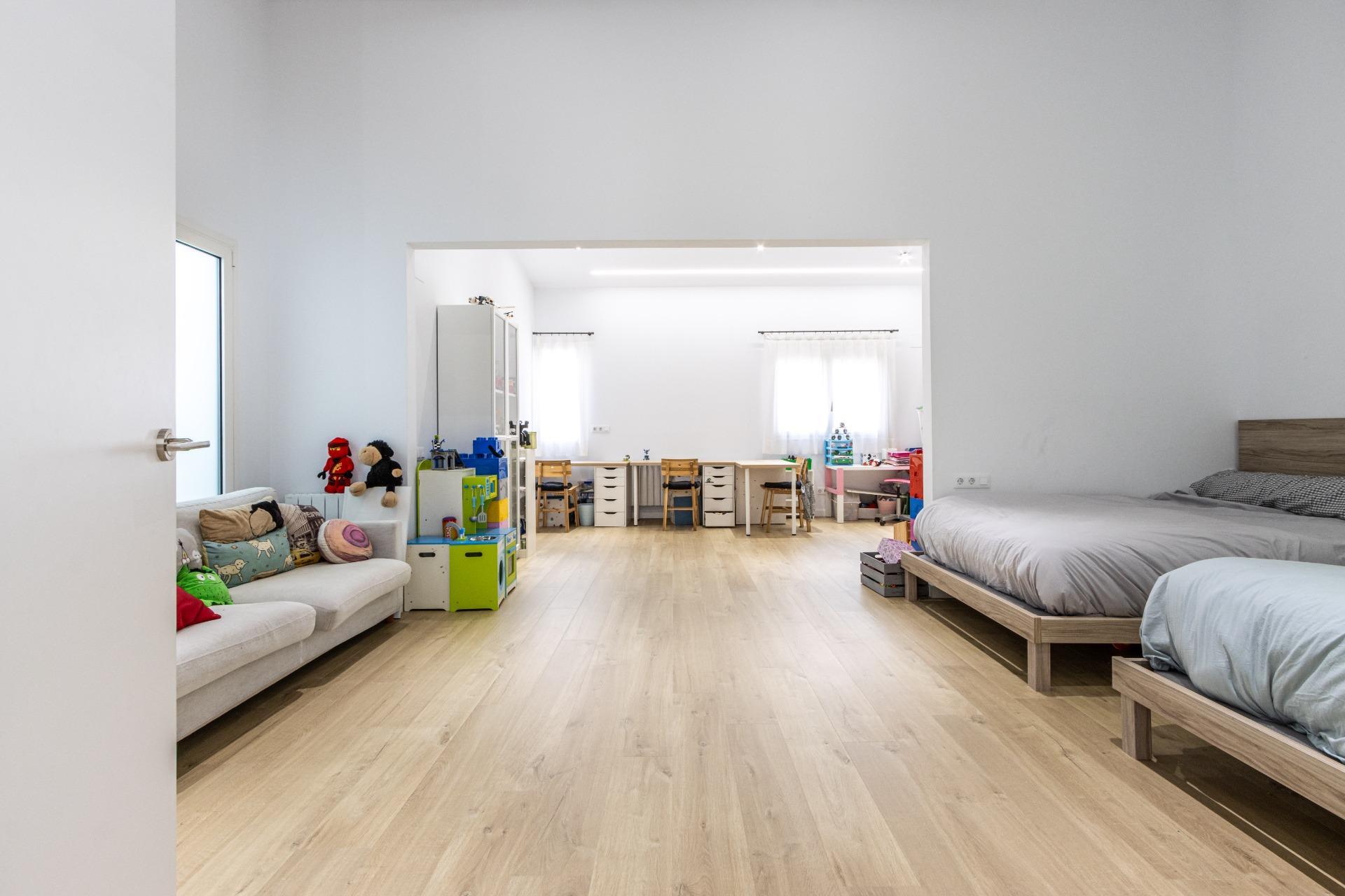 Casa única en el corazón de Sabadell – Junto a la Plaza del Vallés Imagina vivir en pleno centro de Sabadell, rodeado de todos los servicios, comercios, restaurantes y zonas de ocio, con la comodidad de tenerlo todo a un paso… y sin renunciar al espacio, la tranquilidad y la exclusividad que solo una casa de estas características puede ofrecerte. Distribución pensada para disfrutar Planta baja: un garaje de 130m² con capacidad para 4 coches, ideal para familias con varios vehículos o para quienes buscan espacio extra. Además, dispone de bodega para conservar tus mejores vinos y una zona de lavandería perfectamente equipada. El garaje también incluye para los más pequeños un rocódromo, canasta de baloncesto y un lavadero de bicicletas. Primera planta: el corazón de la casa. Un amplio salón-comedor de 50m² con cocina americana, perfecto para reuniones familiares o cenas con amigos. En esta planta encontrarás 2 dormitorios con baño completo y la habitación principal con baño privado, un espectacular vestidor y salida directa a un patio íntimo de 12m². Segunda planta: dos espacios totalmente diáfanos, listo para adaptarse a tu estilo de vida. Puede convertirse en tu despacho, gimnasio, zona de juegos o incluso en dos dormitorios adicionales. Desde aquí accedemos a una terraza soleada de 30m², el lugar perfecto para disfrutar del aire libre y desconectar en plena ciudad. Concluimos la vivienda con una cómoda buhardilla ideal como espacio de almacenamiento. DETALLES QUE MARCAN LA DIFERENCIA Ventanas de aluminio con doble cristas con mosquiteras integradas. Puertas lacadas en blanco y suelos de parquet. Techo con volta catalana, aportando carácter y encanto. Pared con tocho visto en toda la escalera de la casa. Aire acondicionado, calefacción por radiadores y ventiladores de techo. Persianas motorizadas y placas solares, que aportan eficiencia y ahorro energético. Esta casa no es solo una vivienda: es un estilo de vida. Poder aparcar en tu propio garaje en pleno centro, disfrutar de espacios amplios, luminosos y versátiles, y tener tu terraza privada en la ciudad es un privilegio al alcance de muy pocos. ¿Quieres descubrir tu nuevo hogar? Ven a visitarla y siéntete viviendo aquí desde el primer momento.